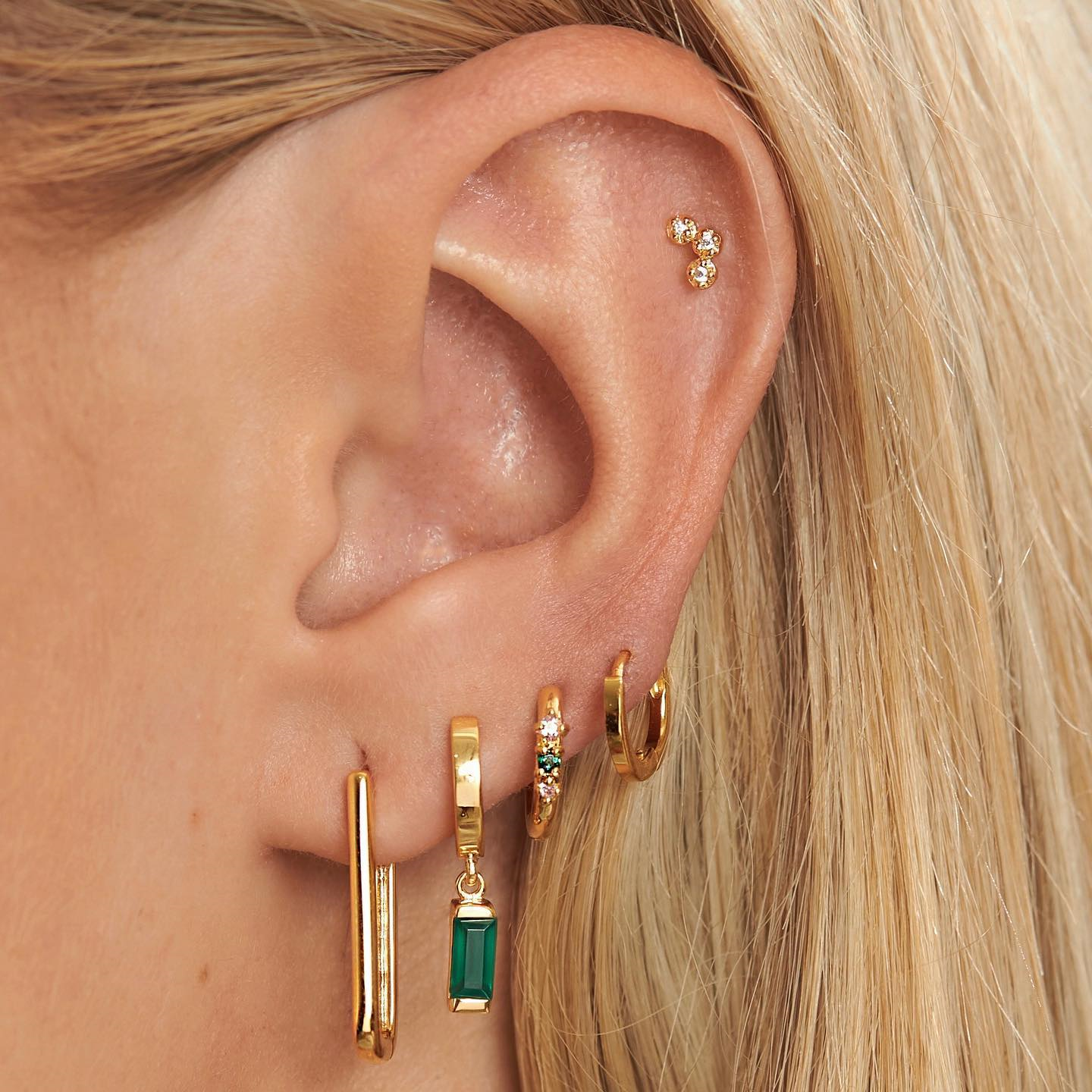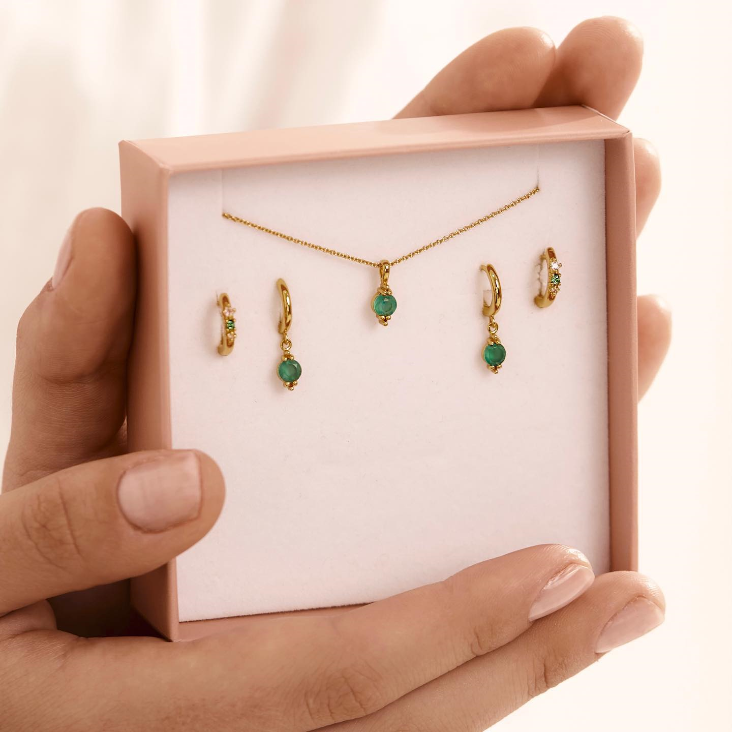 Gudomlig Grön Onyx Huggies Örhängen Guld