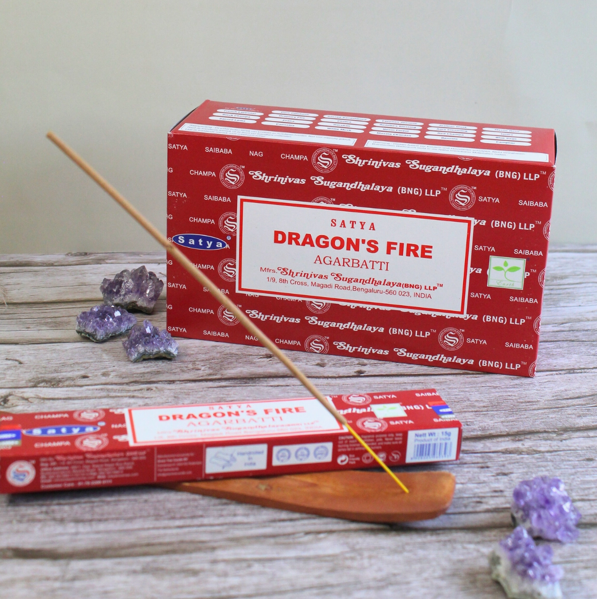Väck din inre kraft med mystiska och eldiga toner från Dragon’s Fire-rökelsen från Satya – en djup, förtrollande doft som väcker själen och skyddar ditt energifält.